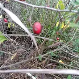 果实近球形或梨形,果形较大,直径可达2.5厘米,深亮红色,有浅色斑点;小核3-5,外面稍具稜,内面两侧平滑;萼片脱落很迟,先端留一圆形深洼。花期5-6月,果期9-10月。