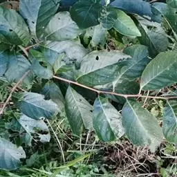 叶纸质,生于小枝最上部的互生,宽椭圆形或近圆形,长5-15厘米,宽4-10厘米,顶端急尖或渐尖,基部近圆形或宽楔形,边缘具粗锯齿,上面无毛或仅叶脉上疏被灰色星状柔毛,下面密被灰白色星状绒毛,侧脉每边5-8条,第三级小脉近于横出,在下面明显隆起;叶柄长1-1.5厘米,被黄棕色星状长柔毛,基部膨大成鞘状包围冬芽,生于小枝最下部的两叶近对生,椭圆形或卵形,长4.5-10厘米,宽3-5厘米,顶端急尖,基部圆形;叶柄长3-5毫米,基部不膨大。