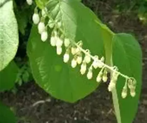玉铃花(学名:Styrax obassia Sieb. et Zucc.)是安息香科,安息香属乔木或灌木,高可达14米,树皮灰褐色,嫩枝略扁,叶片纸质,互生,顶端急尖或渐尖,基部近圆形或宽楔形,边缘具粗锯齿,叶柄被黄棕色星状长柔毛,花白色或粉红色,芳香,总状花序顶生或腋生,花序梗和花序轴近无毛;小苞片线形,早落;花萼杯状,花冠裂片膜质,椭圆形,花蕾时作覆瓦状排列,花冠管长约4毫米,花丝扁平,花柱与花冠裂片近等长,无毛。果实卵形或近卵形,种子长圆形,5-7月开花,8-9月结果。