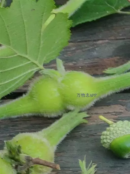 雄花序2-4枚排成总状;苞鳞密被白色短柔毛。果单生或2-6枚簇生,长3-6厘米;果苞管状,在坚果上部缢缩,较果长2-3倍,外面密被黄色刚毛兼有白色短柔毛,上部浅裂,裂片披针形;序梗粗壮,长1.5-2厘米,密被黄色短柔毛。坚果几球形,长约1.5厘米,顶端具小突尖,外面密被白色绒毛。