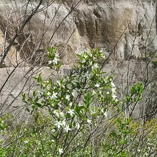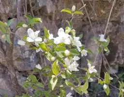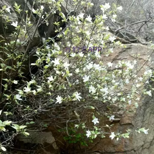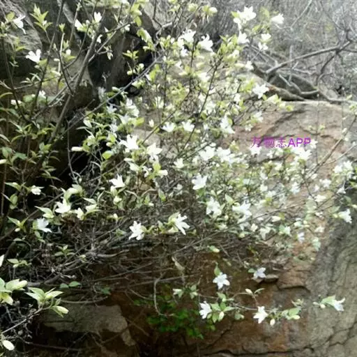 灌木,高约2m;老枝紫褐色或灰褐色,无毛,表皮片状脱落;花枝开始极短,以后延长达4cm,具2~4叶,黄褐色,被具中央长辐线星状毛。叶纸质,卵状菱形或椭圆状卵形,长2~5.5cm,宽1~3.5cm,先端急尖,基部楔形或阔楔形,边缘具大小相间或不整齐锯齿,上面被4~6辐线星状毛,下面灰白色,被7~11辐线星状毛,毛稍紧贴,沿叶脉具中央长辐线,侧脉每边5~6条;叶柄长1~4mm,被星状毛。
