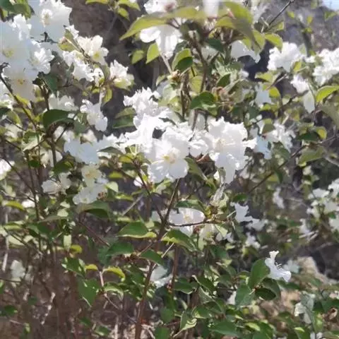 大花溲疏(学名:Deutzia grandiflora Bunge.),又名“华北溲疏”,是虎耳草科,溲疏属灌木,高约2m。树皮常灰褐色。小枝淡灰褐色。叶卵形至卵状椭圆形,长2~5cm,顶端渐尖,基部部圆形,具不整齐细密锯齿。表面稍粗糙,疏被星状毛,辐射枝3~6,背面密被灰白色星状毛辐射枝6~9,中央直立单毛;叶柄长2~3mm。花1~3朵,生于侧枝顶端,白色,直径2.5~3.7cm;花萼被星状毛;花瓣在花蕾期锧合状排列。蒴果半球形,径4~5mm,花柱宿存。花期4~5月,果期6~7月。