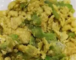 苦瓜炒蛋是一道很普通的家常菜,用苦瓜和鸡蛋一起煎炒而成。