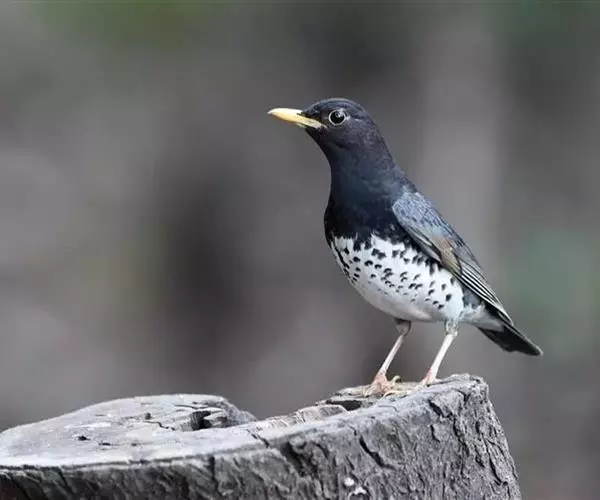 乌灰鸫(学名:Turdus cardis)是鸫科、鸫属中型鸟类,体长20-23厘米。雄鸟整个头、颈、上体、颏、喉和胸概为黑色。其余下体白色,上腹和两胁有黑色斑点。雌鸟上体橄榄色,颏、喉灰白色具褐色斑点,两侧褐色斑点连成一条线状;胸灰色具黑褐色斑点,胸侧和两胁以及翼下覆羽和腋羽橙棕色。飞翔时极为醒目。虹膜褐色,脚黄色或褐色,嘴春季黄色,秋季褐色。