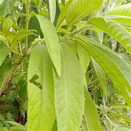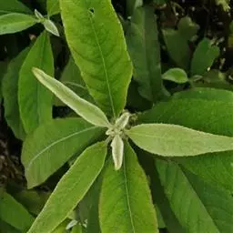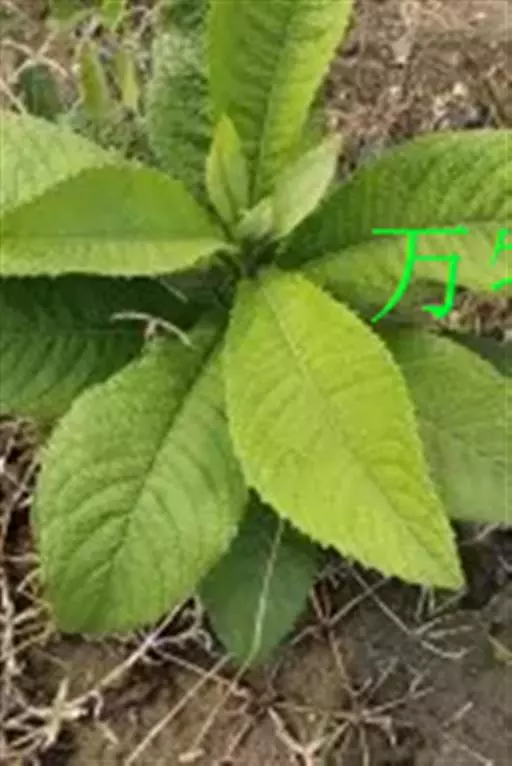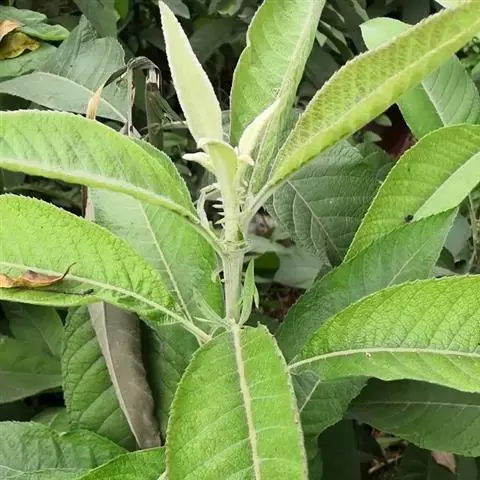 叶:下部叶宽椭圆形或长圆状披针形,长22-25厘米,宽8-10厘米,基部渐狭,具柄,柄两侧有3-5对狭线形的附属物,顶端短尖或钝,边缘有细锯齿,上面被柔毛,下面被淡褐色或黄白色密绢状棉毛,中脉在下面凸起,侧脉10-15对,弧状上升,不抵边缘,有不明显的网脉;上部叶长圆状披针形或卵状披针形,长7-12厘米,宽1.5-3.5厘米,基部略尖,无柄或有短柄,柄的两侧常有1-3对狭线形的附属物,顶端渐尖,全缘、具细锯齿或羽状齿裂,侧脉斜上升,通常与中脉成锐角。