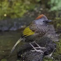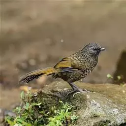 蓝翅噪鹛:噪鹛科、彩翼噪鹛属动物。中型鸟类,体长22-25厘米。上体棕橄榄褐色密被黑色鳞状斑,…