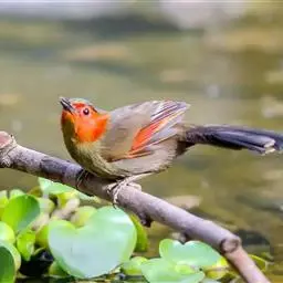 红翅薮鹛是噪眉科、薮鹛属中型鸟类,体长21-24厘米。头顶灰褐色,头侧和颈侧赤红色,上体橄榄褐色,…