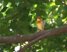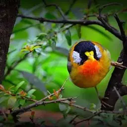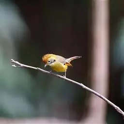 银耳相思鸟小型鸟类,体长14~18厘米。头顶黑色,耳羽银灰色,前额橙黄色;外侧飞羽橙黄色,基部朱红色,…