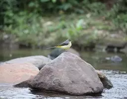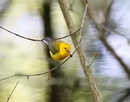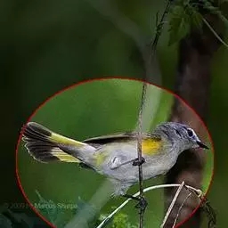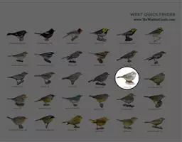 黑脸鹟莺:体长10厘米,是有特色的体小而多彩的莺鸟。粗眉纹,颏、喉及尾下覆羽黄色,脸罩黑,…