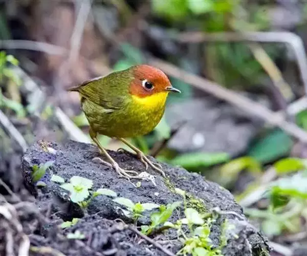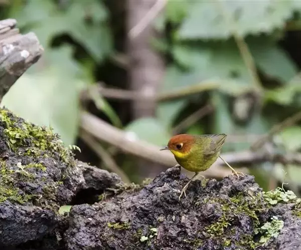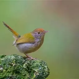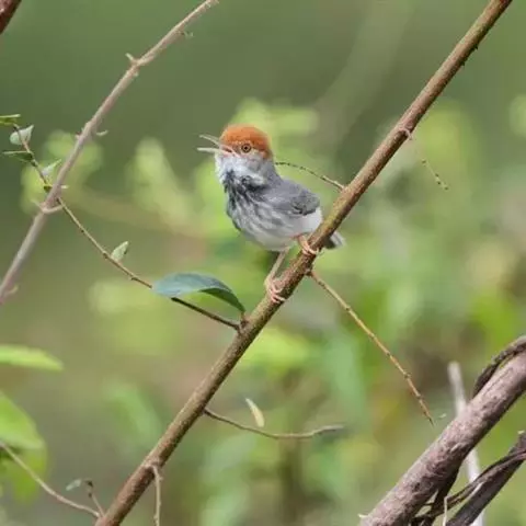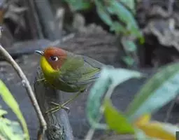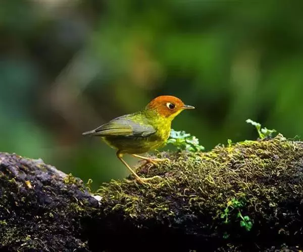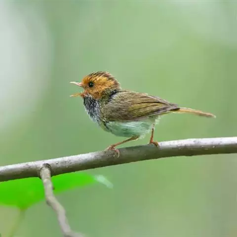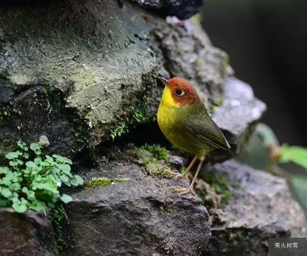 栗头地莺(学名:Tesia castaneocoronata):小型鸣禽。体长约10厘米。体型纤细,是中国体型最小的鸟类之一;喙细尖,上喙先端多有缺刻;翅短圆;尾短至中等;腿短而细。羽色以灰、褐及橄榄绿为主,雌雄羽色相似。栖息于灌木或稀疏林内,以昆虫为主食,鸣声清脆、多变、悦耳。在灌丛中或树上以草茎、苔藓、兽毛等编制碗状巢,每窝产卵2-3枚,由雌雄轮流孵卵,两性育雏,孵化期及雏期约12-14天。栖息于多种环境中。留鸟。分布于中国和东南亚各国。