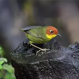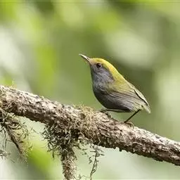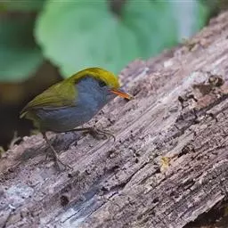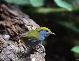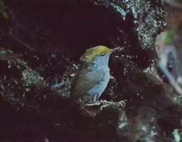 金冠地莺:形态与灰腹地莺相似,上体橄榄绿,前额至头顶渲染亮金黄色;下体几乎纯暗石板灰色,…