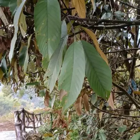 叶披针形,长6-12厘米,宽1.5-3厘米,或长4-6厘米,宽1-2厘米,或卵形,长6-9厘米,宽3-4.5厘米,顶部渐尖或渐狭长尖,基部有时一侧稍偏斜,叶全缘,或兼有少数浅裂齿,鲜叶的中脉在叶面平坦或微凸起,压干后常变凹陷,侧脉每边8-13条,稀较少,在叶面微凸,在叶缘附近上下连结,支脉纤细,嫩叶叶背有红褐色或棕黄色稍紧贴的细片状蜡鳞层,成长叶呈银灰色或多少带灰白色;叶柄长通常不到10毫米,基部增粗呈枕状。