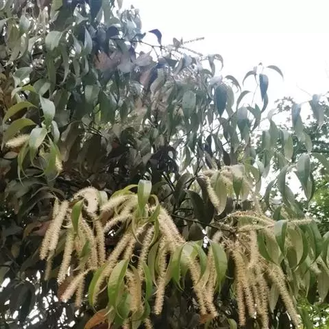 米槠〔学名:Castanopsis carlesii (Hemsl.)Hay.〕:壳斗科,锥属乔木,高可达20米,芽小,叶披针形,叶全缘,或兼有少数浅裂齿,嫩叶叶背有红褐色或棕黄色稍紧贴的细片状蜡鳞层,成长叶呈银灰色或多少带灰白色;雄圆锥花序近顶生,花序轴无毛或近无毛,果序无毛,壳斗近圆球形或阔卵形,坚果近圆球形或阔圆锥形,熟透时无毛,果脐位于坚果底部。3-6月开花,次年9-11月结果成熟。