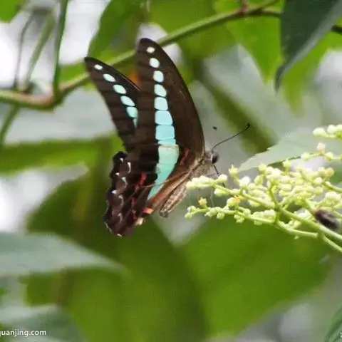 青带凤蝶Graphium sarpedon ,又名青凤蝶,是最普遍的中型凤蝶,飞行速度很快。青带凤…