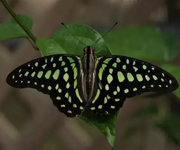 碎斑青凤蝶是凤蝶科、青凤蝶属昆虫。体背面黑色,具绿毛,腹面淡白色。翅黑褐色,…