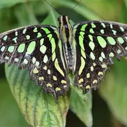 统帅青凤蝶(学名:Graphium agamemnon,英文:Tailed jay),是凤蝶科青凤蝶属的一种中型蝴蝶,多出现于林区。寄主为多种木兰科和番荔枝科的植物;成虫访花,飞行快速,春夏秋季出现。雌蝶在食草产卵时会较易观察;统帅青凤蝶展翅宽70-80mm,翅膀上布满细碎的绿色斑纹,有翅尾。雄蝶翅尾较短,后翅内绿反卷,内有白色长毛。该物种数量较多,所以不受保护。1年发生多代,以蛹越冬。