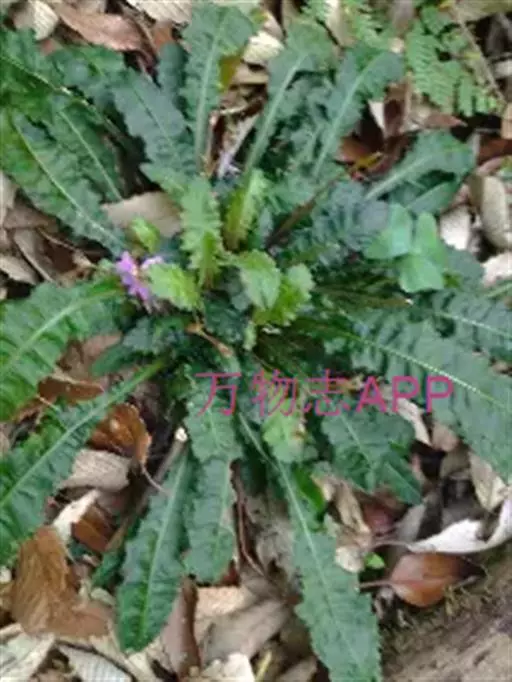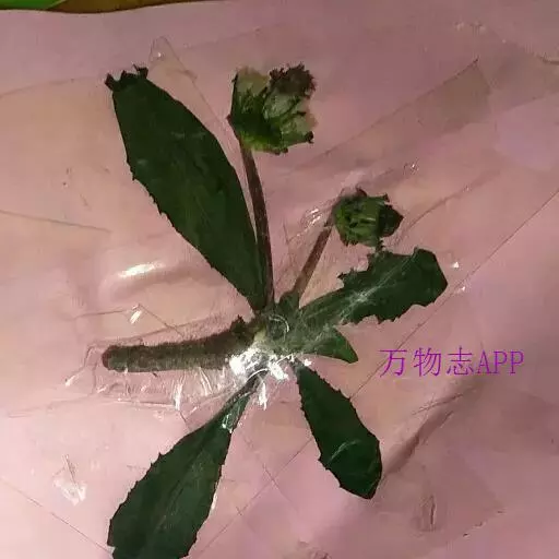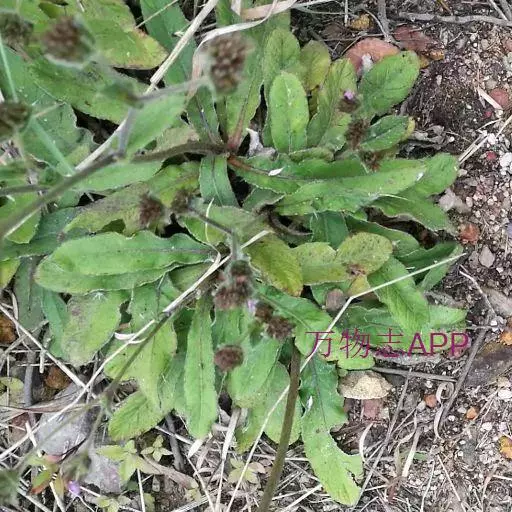 地胆草(学名:Elephantopus scaber L.)是菊科地胆草属直立草本植物。根状茎平卧或斜升,具多数纤维状根;茎二歧分枝,粗壮,被白色粗硬毛。单叶,大都基生,长园状披针形、匙形或长圆状匙形,长5-18厘米,宽达2-4厘米,前端钝圆,基部渐狭;茎生叶少而小。头状花序,多数密集成复头状花序;每个头状花序约有小花4朵,全为两性花,花冠筒状,淡紫色,前端4裂。瘦果,中上部细长,基部宽阔;有棱,被白色柔毛,具长硬刺毛;冠毛1层,灰白色。花期7-11月,果期11月至次年2月。