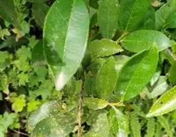 灌木或小乔木,叶革质,稍厚,长圆状椭圆形或椭圆形, 格药柃(图1) 长5.5-11.5厘米,宽2-4.3厘米,顶端渐尖,基部楔形,有时近阔楔形,边缘有细钝锯齿,上面深绿色,有光泽,下面黄绿色或淡绿色,两面均无毛,中脉在上面凹下,下面隆起,侧脉9-11对,两面均不甚明显或在上面稍明显;叶柄长4-5毫米。