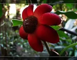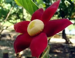 花黄白色,单朵与叶对生或互生;花梗长2-5.5厘米,无毛;萼片卵圆形,长3-5毫米,外面被微柔毛;外轮花瓣比内轮花瓣大,长圆形或长圆状披针形,长达9厘米,宽达2厘米,顶端钝,两面被微柔毛,内轮花瓣长圆状披针形,长达7厘米,宽达1.5厘米,两面被微毛;花托凸起,顶端平坦或略凹陷;雄蕊长圆形,药隔顶端截形;心皮长圆形,长1-1.5毫米,被长柔毛,柱头近头状,向外弯,顶端2裂。果有柄,念珠状,长2-5厘米,内有种子1-7颗;种子球状,直径约5毫米。花期夏至冬季,果期6月至翌年春季。