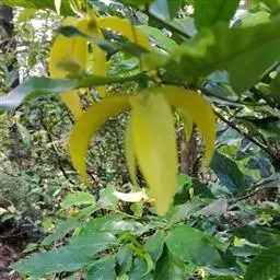 依兰香是依兰属,常绿大乔木,高大20米,花2-5朵腋生,黄绿色,花朵较大,长达8厘米;成熟的果近圆球状或卵状,黑色。依兰香主要用新鲜花瓣来蒸油,称依兰油,是珍贵的香料工业原材料,广泛用于香水、香皂和化妆品等。