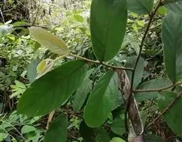 假鹰爪 直立或攀援灌木,有时上枝蔓延,除花外,全株无毛;枝皮粗糙,有纵条纹,有灰白色凸起的皮孔。叶薄纸质或膜质,长圆形或椭圆形,少数为阔卵形,长4-13厘米,宽2-5厘米,顶端钝或急尖,基部圆形或稍偏斜,上面有光泽,下面粉绿色。
