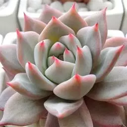 吉娃莲,景天科拟石莲花属,别名:吉娃娃,吉娃莲,植株小型,无茎的莲座叶盘非常紧凑。卵形叶较厚,带小尖,…