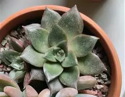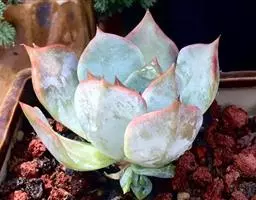 大和锦是景天科拟石莲花属的多肉植物。肉质叶排成紧密的莲座状,广卵形至散三角卵形,背面突起呈龙骨状,…
