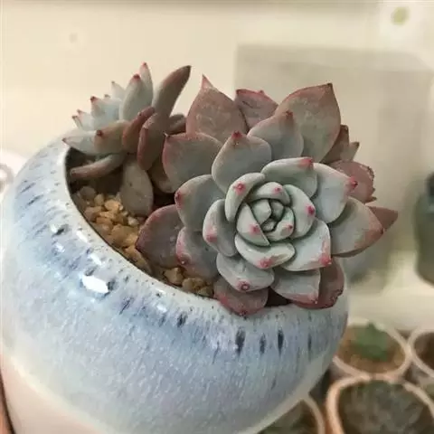 薄叶蓝鸟 叶片蓝绿色,叶尖红色,带粉,花型紧凑,非常漂亮。原产于墨西哥,现世界各地均有栽培。