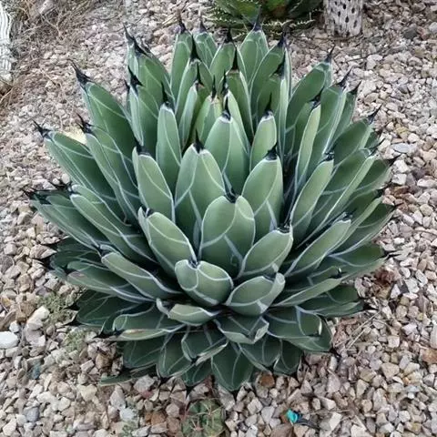 皇后龙舌兰是天门冬科、龙舌兰属多年生草本多浆植物。无主茎,叶丛生,莲座状,株幅40厘米。叶较多,…