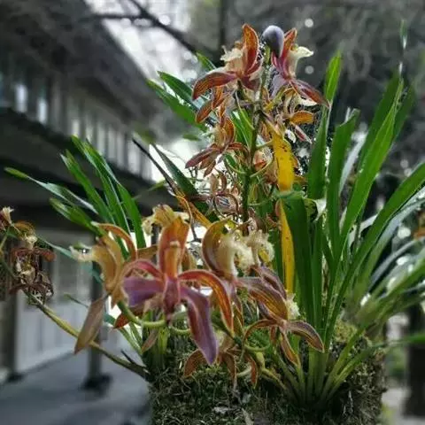 莎叶兰:地生或半附生植物;假鳞茎较小,长1-2厘米,包藏于叶鞘之内。叶4-12枚,带形,常整齐2列…