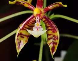 喉红石斛:附生。茎丛生,直立,粗短,近棒状纺锤体。叶2-4枚,生于茎顶。总状花序顶生,花序轴长5-…