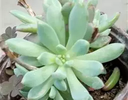 蓝石莲是景天科、拟石莲花属的多肉植物。茎部粗壮,成熟植株茎部木质化。叶片莲座型密集排列,株径不会很大,…