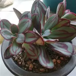 小红衣是景天科、拟石莲花属的一种多肉植物。叶片匙形,扁平细长,叶表具白粉,有明显的半透明边缘,…