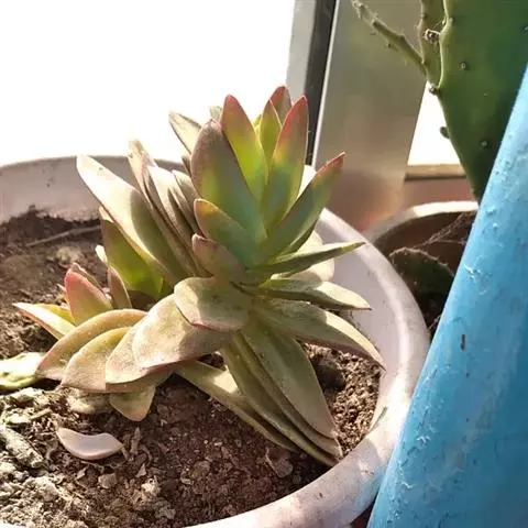 红缘莲花掌属蔷薇目、景天科植物,原产大西洋的加那利群岛。质厚,蓝绿色,被白霜,叶缘红褐色。聚伞花序,…