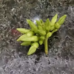 叶子表面宽厚,富肉质感且带有磨纱质感,看像石头质地;开红色小花,生于植株顶部,倒伞形密生,形状像花…