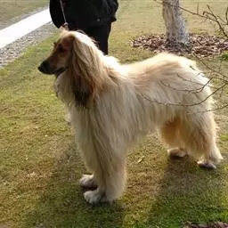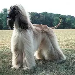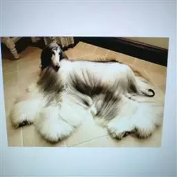 阿富汗猎犬全身披丝绢状的长毛,毛色鲜艳,呈多种颜色,背中线附近毛短,…