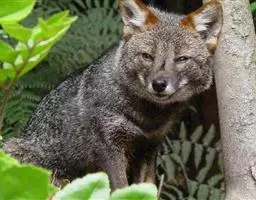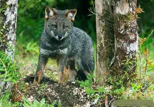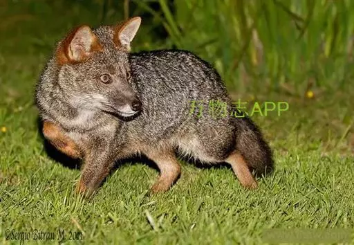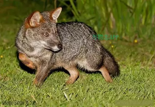 达尔文狐(学名:Lycalopex fulvipes):体长48-60厘米,平均肩高25厘米,尾长17-26厘米,体重1.9-3.9千克。是一种体形非常小的狐狸。毛色暗灰色,腿部和面部有红色。腹部、喉头、胸口和耳内有白色或奶油色毛。耳壳红毛特别鲜艳。