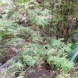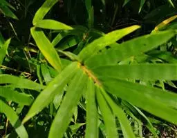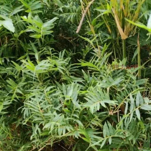 凤尾竹 Raeusch. ex Schult. ’Fernleaf’ R. A. Young)是禾本科,簕竹属孝顺竹的变种。植株较高大,杆高可达6米,竿中空,小枝稍下弯,下部挺直,绿色;竿壁稍薄;节处稍隆起,无毛;叶鞘无毛,纵肋稍隆起,背部具脊;叶耳肾形,边缘具波曲状细长繸毛;叶舌圆拱形,叶片线形,上表面无毛,下表面粉绿而密被短柔毛,小穗含小花,中间小花为两性;外稃两侧稍不对称,长圆状披针形,先端急尖;内稃线形,脊上被短纤毛,花药紫色,子房卵球形,羽毛状。成熟颖果未见。原产中国,华东、华南、西南以至台湾、香港均有栽培。凤尾竹喜温暖、湿润和阳光充足的环境,耐寒。宜土层深厚、肥沃、疏松的微酸性壤土。该种观赏价值较高,宜作庭院丛栽,也可作盆景植物。全草或根入药,味淡、微苦,性寒,有清热利湿、凉血止血、消肿解毒功效,可治痢疾、泄泻等多种病症。凤尾