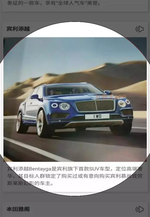 宾利添越Bentayga是宾利旗下首款SUV车型,定位高端奢华,其目标人群锁定了购买过或有意向购买宾利慕尚或劳斯莱斯幻影的车主。