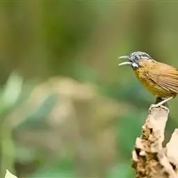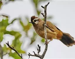 褐脸雀鹛是雀眉科、雀鹛属型鸟类,体长15-17厘米。头顶褐灰色具黑色侧冠纹,头侧皮黄褐色。…