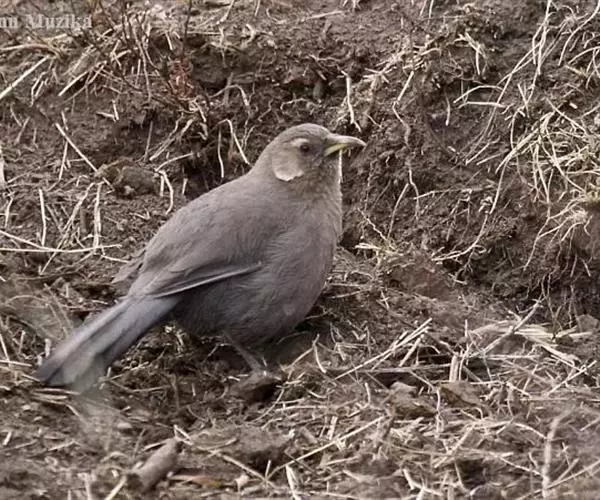 中型鸣禽。全身黑褐色,上体、下体灰砂褐色或暗灰褐色,无显著花纹;嘴稍向下曲;鼻孔完全被须羽掩盖;嘴在鼻孔处的厚度与其宽度几乎相等。体长约250mm,体重约55g。