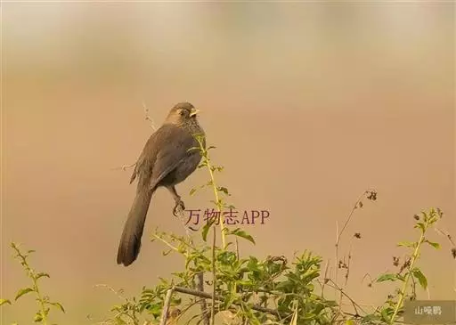 山噪鹛学名Garrulax davidi,雀形目鹟科,中型鸣禽。全身黑褐色,上体灰砂褐色或灰褐色。嘴稍向下曲。栖息于山地灌丛中,经常成对活动。列入国家林业局《国家保护的有的或者有重要经济、科学研究价值的陆生野生动物名录》。兰州地区常见 。