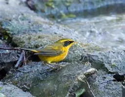 金色林鸲是鹟科、鸲属小型鸟类,体长12-15厘米。头顶至背黄橄榄绿色,眼先和头侧黑褐色,眉纹金橙黄色。…