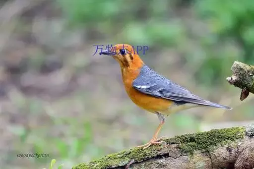 橙头地鸫(学名:Geokichla citrina)是鸫科、地鸫属中型鸟类,体长18-22厘米。整个头、颈和下体橙栗色,其余上体包括两翅和尾蓝灰色或橄榄灰色,翅上多具白色翅斑(仅云南亚种无白色翅斑)。虹膜褐色或棕褐色,嘴黑褐色或黑色,脚橙黄色或肉黄色。特征极明显。野外不难识别。