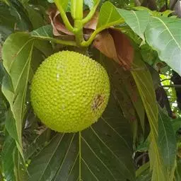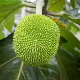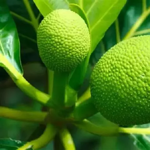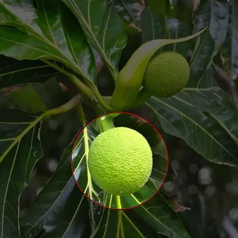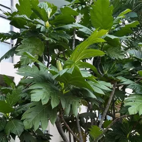 面包树 Fosberg)是桑科波罗蜜属植物。叶大,成熟之叶羽状分裂,表面深绿色,…
