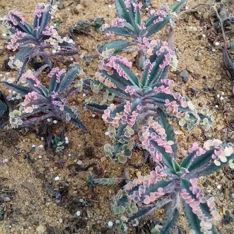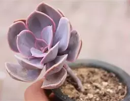 紫珍珠是景天科石莲花属的多年生肉质草本植物。植株中小型;叶片肉质,匙形,呈莲座状紧密排列;叶片粉紫色,…