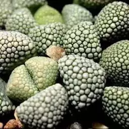 五十铃玉是番杏科窗玉属的多年生肉质植物,别名有“棒叶花”“婴儿脚趾”。植株高5厘米,叶片淡绿色,肉质,…