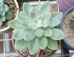 吉娃莲,景天科拟石莲花属,别名:吉娃娃,吉娃莲,植株小型,无茎的莲座叶盘非常紧凑。卵形叶较厚,带小尖,…