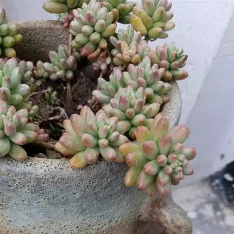 铭月是景天科景天属的多年生亚灌木。多分枝,茎蔓生或直立,高约10-30厘米。…