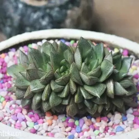 大和锦是景天科拟石莲花属的多肉植物。肉质叶排成紧密的莲座状,广卵形至散三角卵形,背面突起呈龙骨状,…